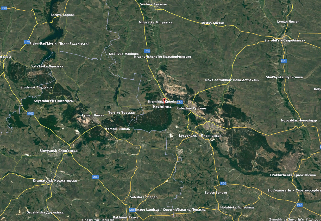 Kreminna sits about midway along the P-66 Highway, a key roadway running from Svatove in the north and to Novoaidar to the east.