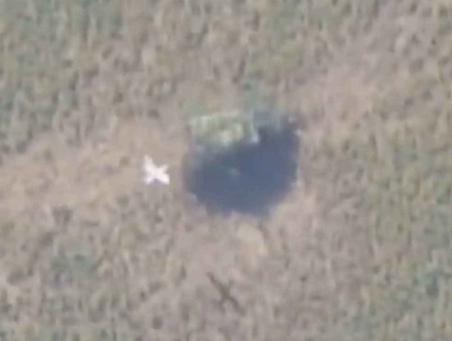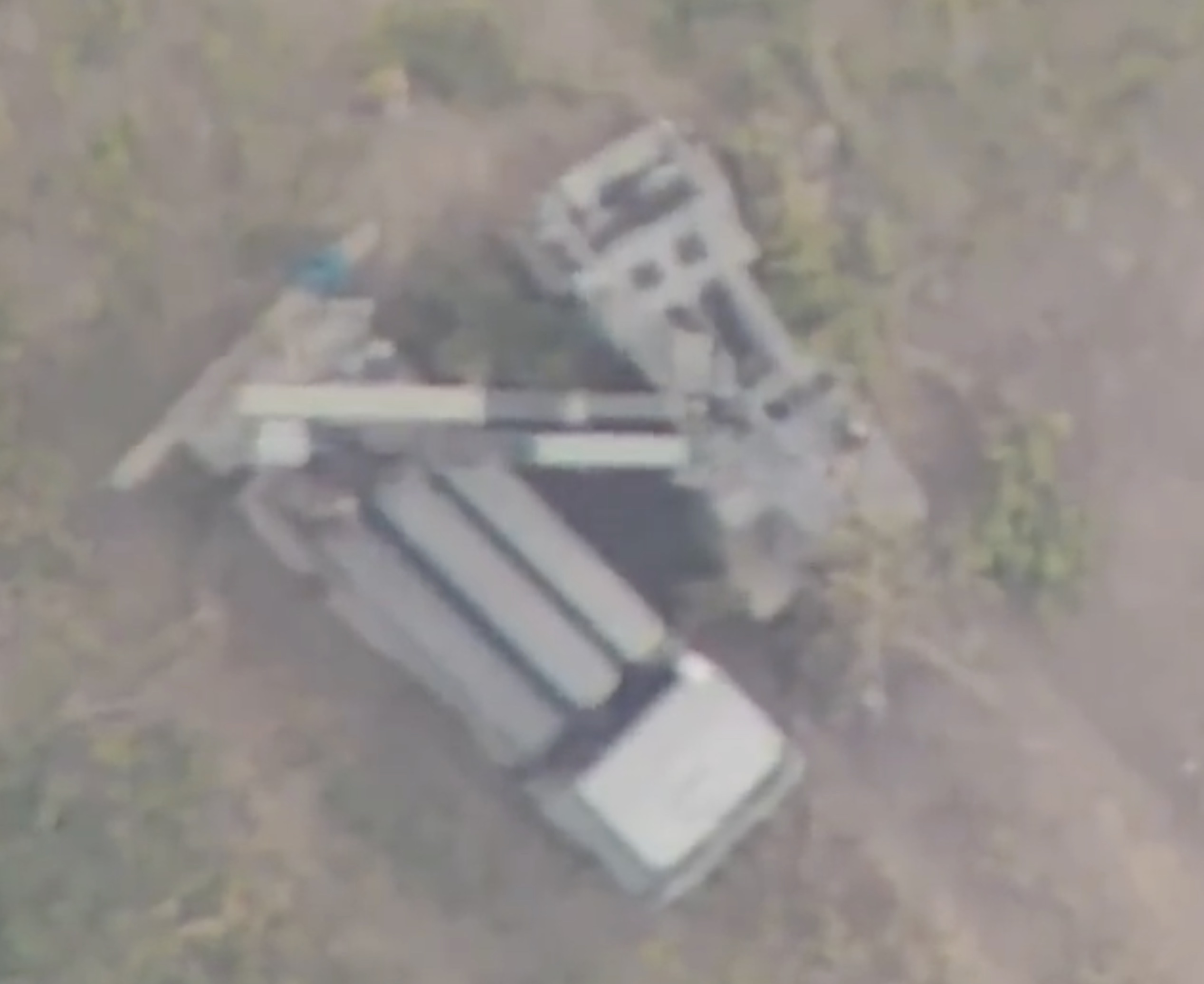 A bird’s-eye perspective — presumably shot from a Russian spotter drone — in the opening parts of the video shows components of the system positioned in the middle of a field. The footage then transitions to show a missile launcher and a reloading vehicle close together, during which a launcher cell can be seen being transferred from one to the other. In addition, an individual is seen near the reloading vehicle.