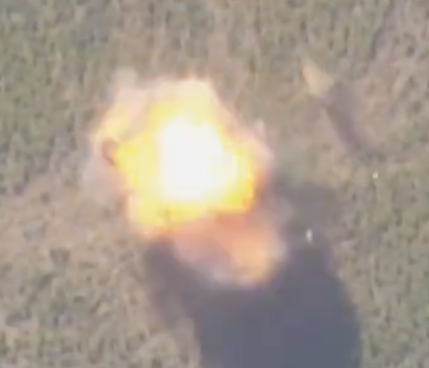 We then see footage captured from the loitering munition in question hurtling towards the control station, which cuts just prior to the moment of impact. Video taken from another drone filming the scene from above confirms that the loitering munition directly struck its target, appearing to splinter into pieces on impact.