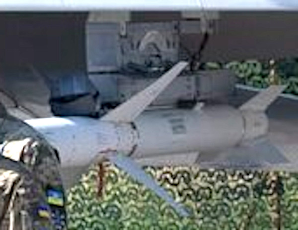 Whatever the exact purpose of special pylons that Ukrainain MiG-29s and Su-27s have been using to carry JDAM-ERs might be, we do at least now know for certain that the design incorporates some kind of antenna/sensor or emitter at the front.
