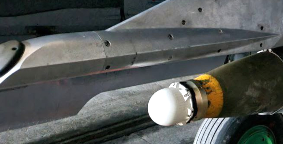 What doesn’t change is the bomb’s need for locational data at the moment of launch to understand its relative position to the target. However, Ukraine’s MiG-29s and Su-27s do not have the kind of integrated GPS/INS capability and a NATO-compatible data bus that is needed for JDAM-ER. So, the fixture at the end of the pylon could be a GPS antenna that feeds key information into the bombs before they are released. Mounting it on the protrusion would help ensure it has a clear line of sight to the satellite constellation and is not shadowed by the aircraft’s wing structure.