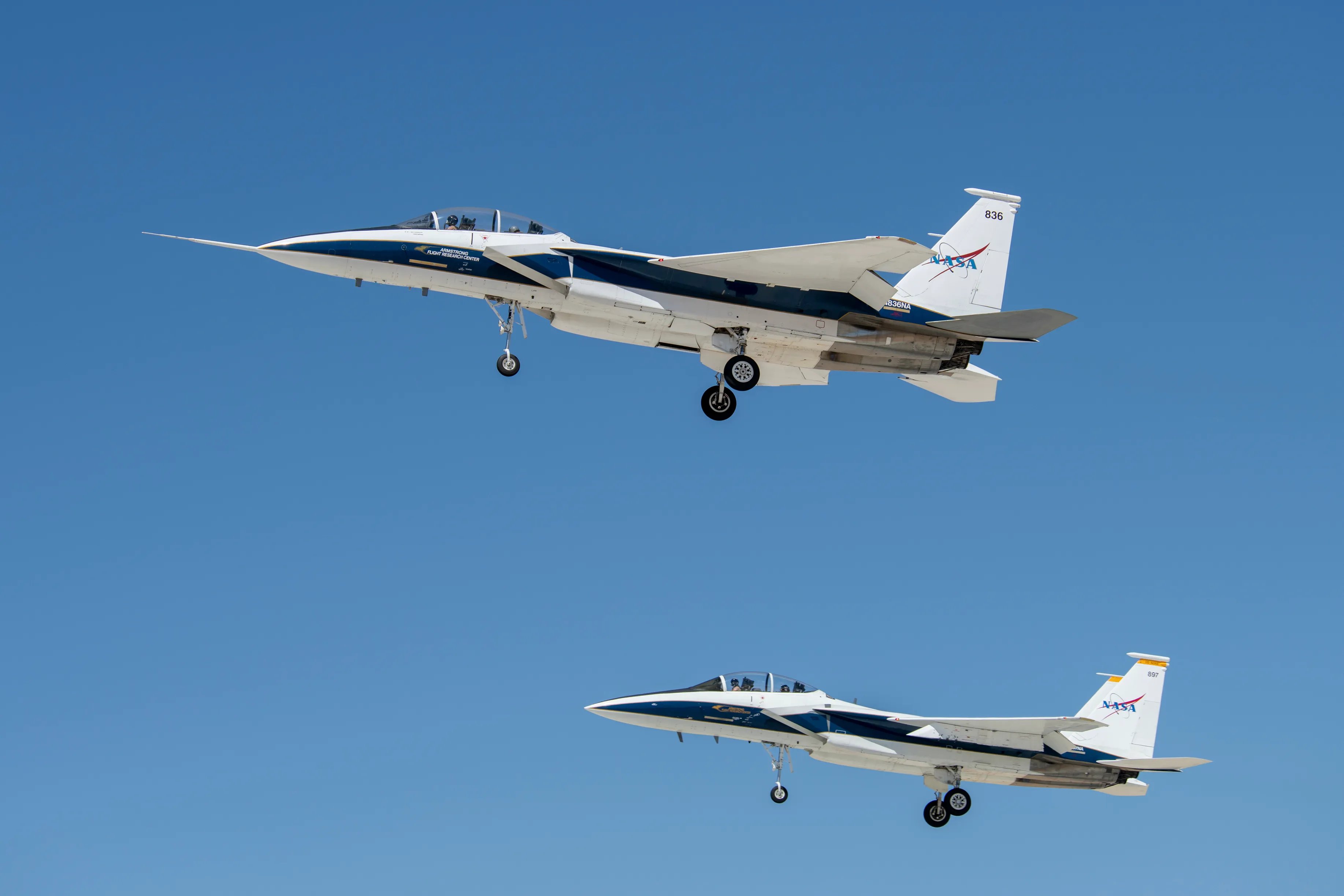 In the meantime, NASA researchers continue to utilize earlier Eagles — including NASA tail number 836, a 1974-vintage F-15B, a variant of the jet long since discarded by the Air Force. This particular jet was obtained by NASA in 1993 from the Hawaii Air National Guard.