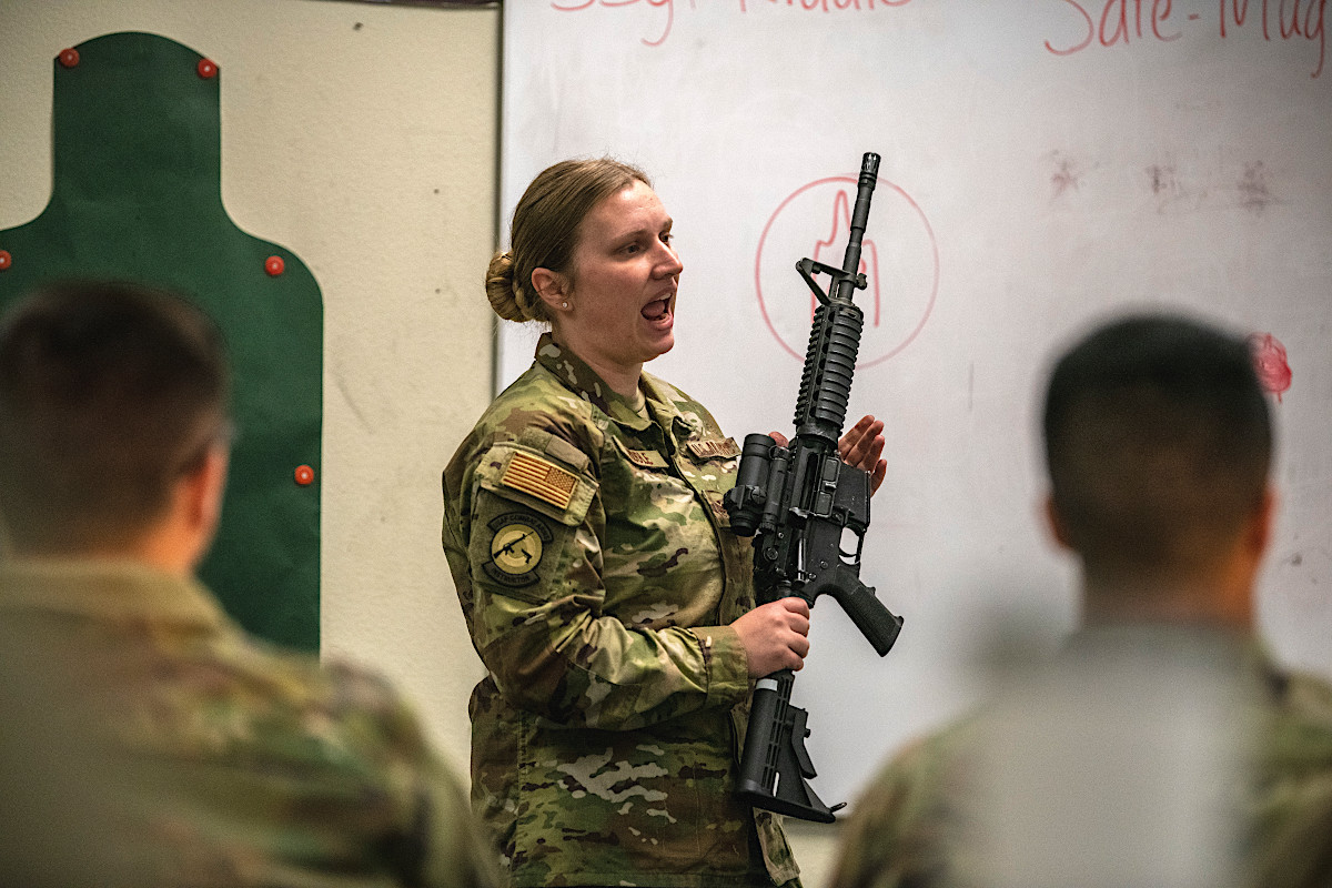 “This quick, hands-on training gives Airmen the familiarity they need to be comfortable if the occasion would arise where they need to use this weapon, especially outside of their career fields,” Air Force Master Sgt. Justin Traylor, 60th Security Forces Squadron logistics superintendent, is quoted as saying in that piece.