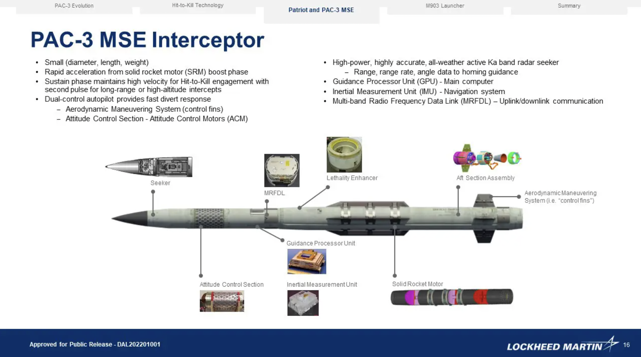 The PAC-3 series, the baseline version of which first entered U.S. Army service in 2001, represented a much more radical departure from earlier Patriot interceptors. All PAC-3 types, which Lockheed Martin produces and are sometimes referred to collectively as MIM-104Fs, have a totally different configuration that is svelter than their predecessors.