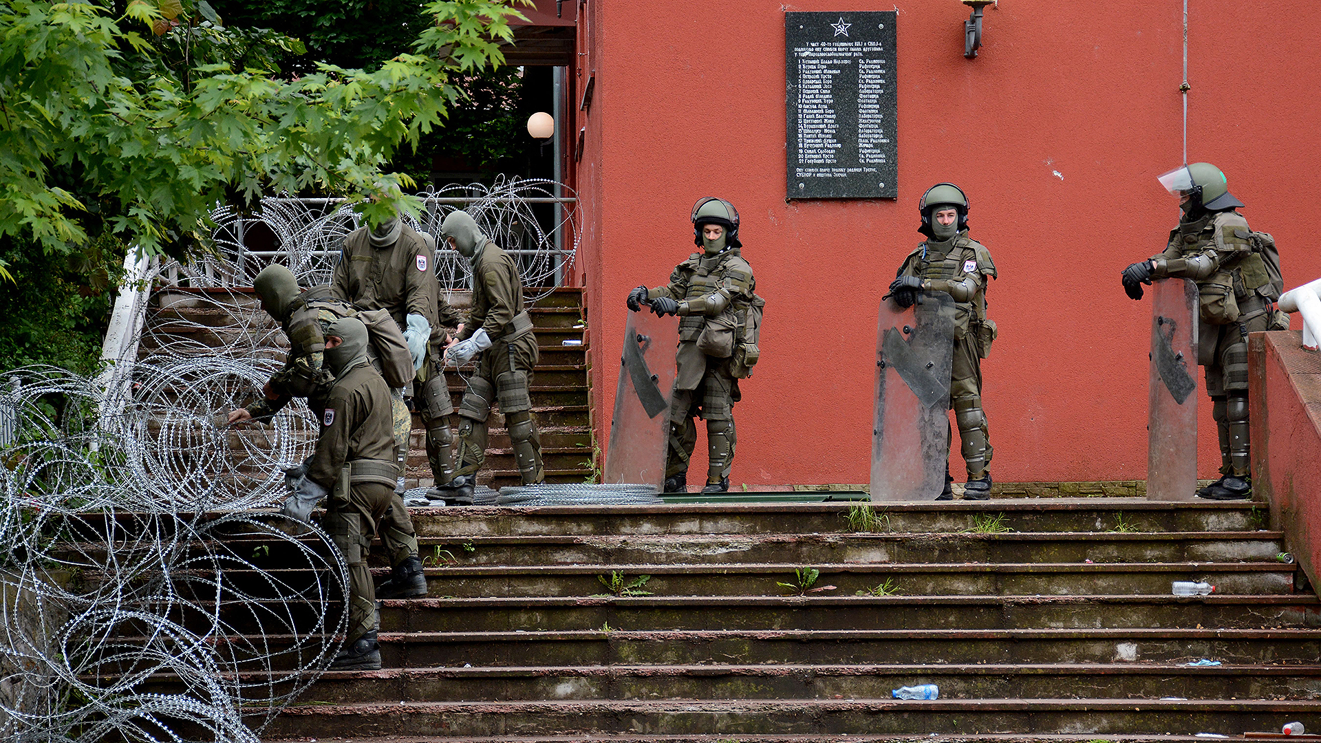 NATO peacekeeping troops and protesters clashed in other areas of the north, too. In all, three separate town halls in Zvecan, Zubin Potok, and Leposavic were descended on by ethnic Serbs on May 29. In Leposavic, for example, U.S. peacekeeping troops in riot gear placed barbed wire around the town hall to protect it, as Reuters reports.